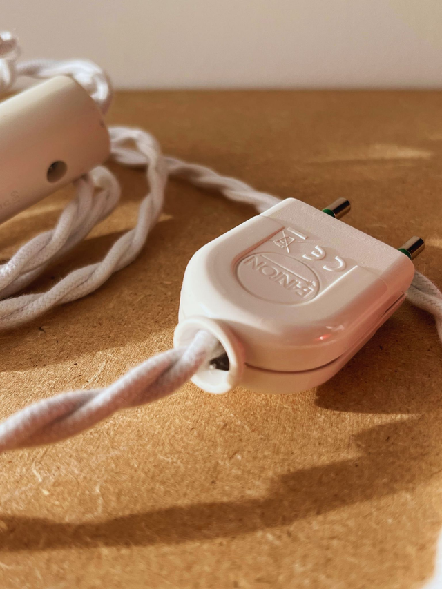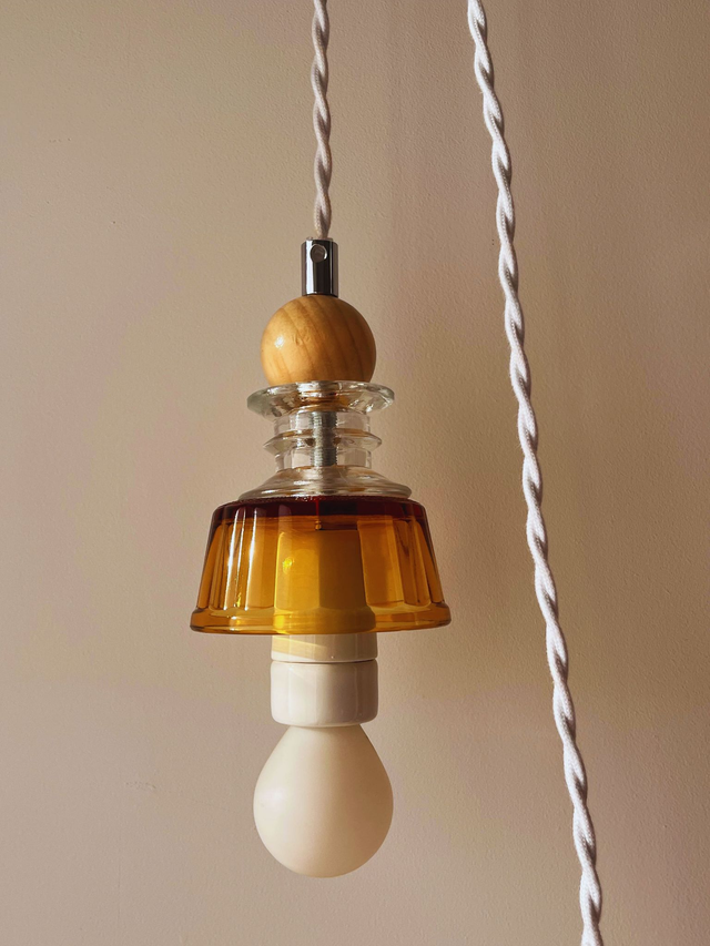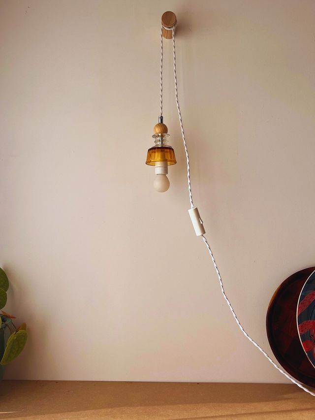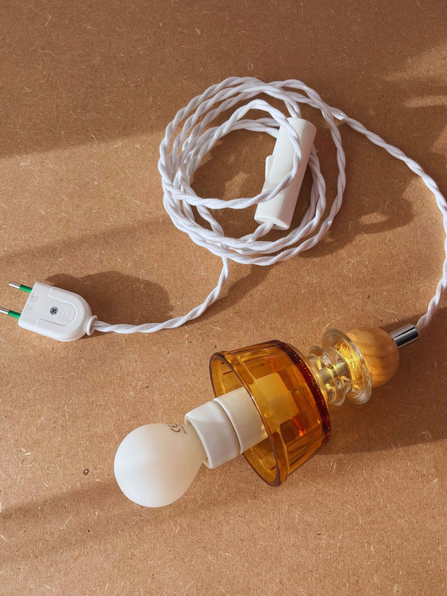 Louise est une jolie lampe baladeuse, fabriquée à la main dans mon atelier à partir de pièces chinées, détournées de leur usage premier pour devenir une pièce de design unique.